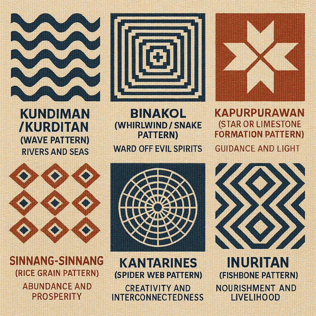 Inabel textiles feature geometric patterns, stripes, and symbolic motifs. Some represent natural elements like rivers, mountains, or animals; others symbolize cultural values such as protection, fertility, or prosperity.